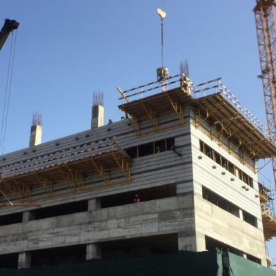 A 16-story government office building located in Accra, Ghana. The building was built by the construction company Amandi in 2017 and includes 23,000 square meters.The construction process included the use of SBA Rummy formwork system, Eitan Steel formwork system and special costume formworks for decorative walls.